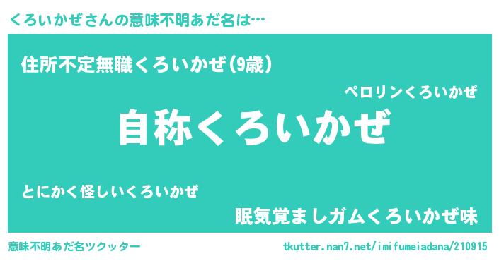 | 男性向けラノベタイトル風あだ名 | 『Re:くろいかぜから始める異世界生活』 |