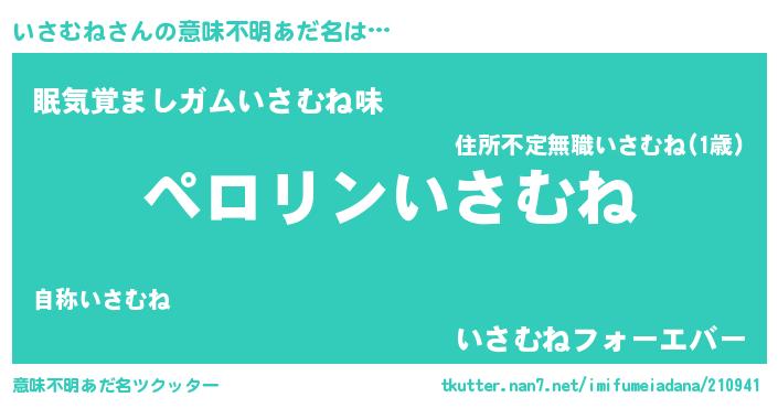 | ヒーロー風カッコイイあだ名 | 『スーパーイサムネ』『仮面イサダー』 |