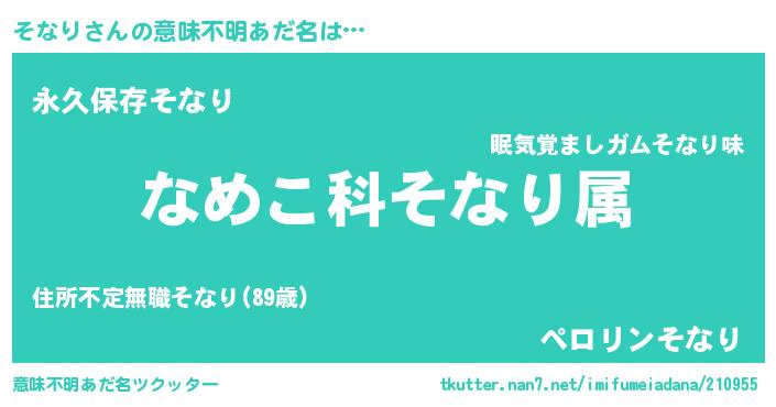 | 胡散臭い通販商品みたいなあだ名 | 『来世でも幸せになれる水素水…その名も「そなり」』 |
