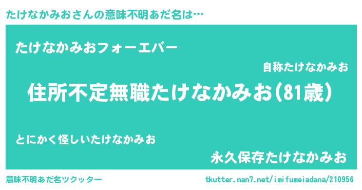 | 料理風あだ名 | 『たけなかみおのカルパッチョ風』 |