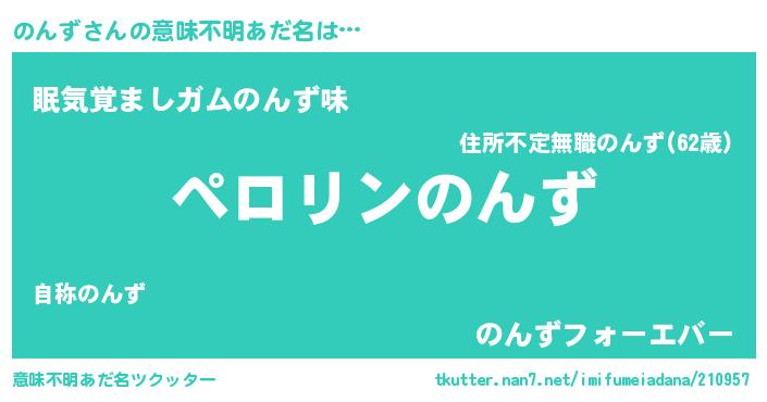 | 男性向けラノベタイトル風あだ名 | 『のんずの憂鬱』『魔弾の王とのんず』 |