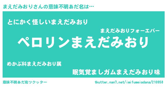 | 胡散臭い通販商品みたいなあだ名 | 『必ず成功するブレスレット…その名も「まえだみおり」』 |
