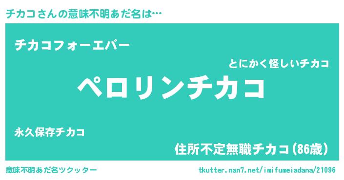 | ヒーロー風カッコイイあだ名 | 『スーパーチカコ』『ウルトラチカコマン』 |