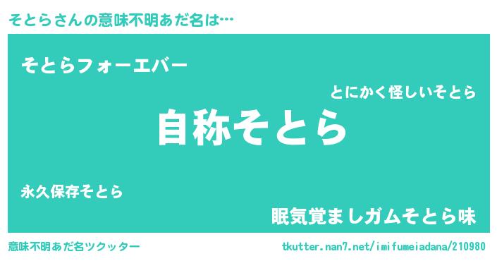| 欧米人風あだ名 | 『ケンブリッジそとら』『ダニエルそとら』 |