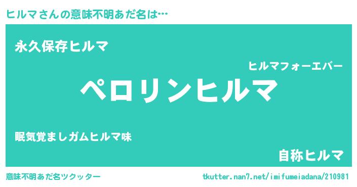 | 胡散臭い通販商品みたいなあだ名 | 『必ず成功する水晶球…その名も「ヒルマ」』 |