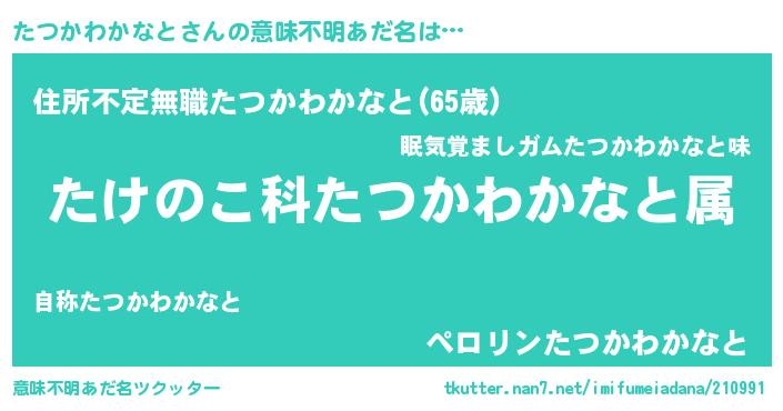 | 男性向けラノベタイトル風あだ名 | 『転生したらたつかわかなとだった件』 |