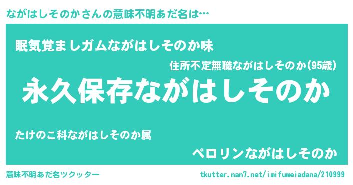 | 胡散臭い通販商品みたいなあだ名 | 『前代未聞の健康食品…その名も「ながはしそのか」』 |
