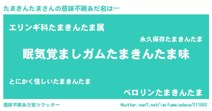 | 男性向けラノベタイトル風あだ名 | 『うちのたまきんたまが世界を掌握している!』 |