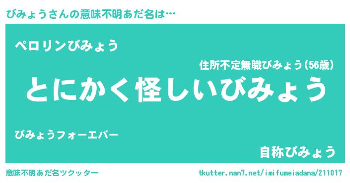 | ヒーロー風カッコイイあだ名 | 『幻影騎士ビミ』『スーパービミョウ』 |