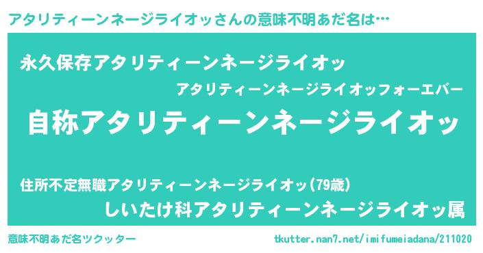 | 肩書あだ名 | 『アタリティーンネージライオッ閣下』 |