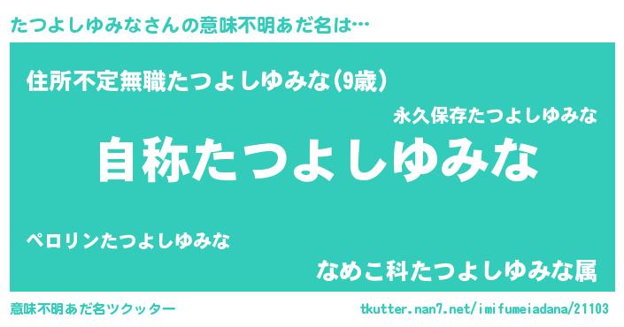 | ヘコむあだ名 | 『たつよしゆみな(小並感)』『たつもー』 |