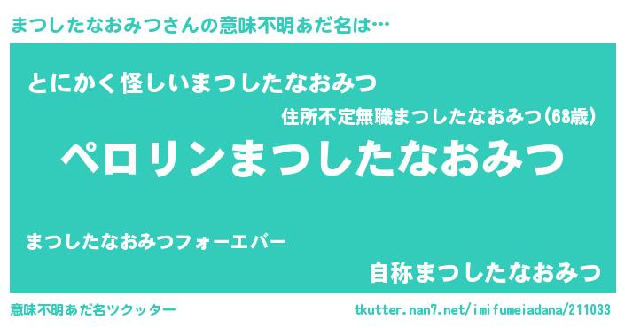 | 胡散臭い通販商品みたいなあだ名 | 『億万長者になれる水晶球…その名も「まつしたなおみつ」』 |