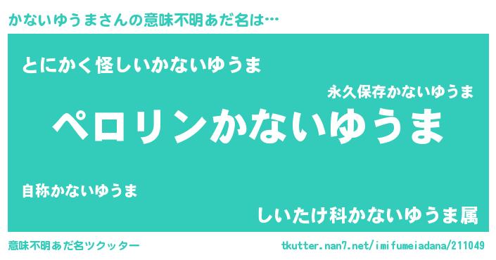 | 肩書あだ名 | 『かないゆうま社長』『かないゆうま少将』 |
