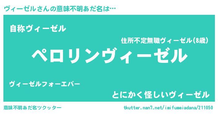 | 男性向けラノベタイトル風あだ名 | 『ヴィーゼルの憂鬱』 |