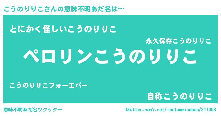 | 男性向けラノベタイトル風あだ名 | 『こうのりりこの憂鬱』 |