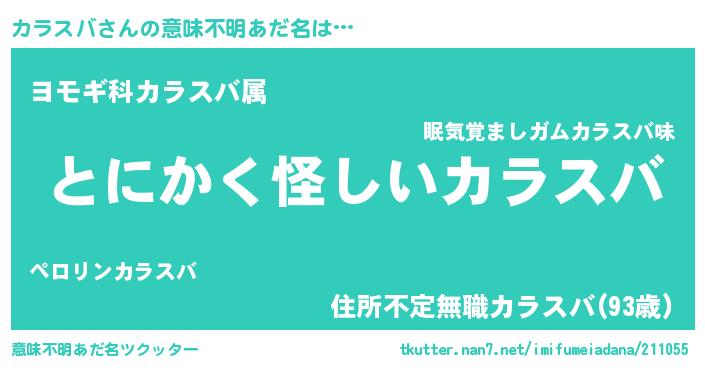 | 女子向けラノベタイトル風あだ名 | 『カラスバ様がみてる』『カラスバ恋絵巻』 |