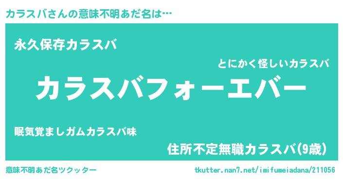 | 男性向けラノベタイトル風あだ名 | 『カラスバに滅ぼされるだけの簡単なお仕事です』 |