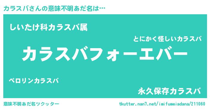 | ヒーロー風カッコイイあだ名 | 『ウルトラカラスバマン』『ネオカラスバ』 |