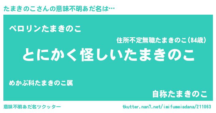 | 男性向けラノベタイトル風あだ名 | 『たまきのこの嫁は女の子じゃないと思った?』 |