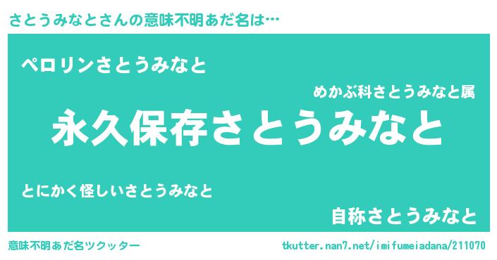 | 胡散臭い通販商品みたいなあだ名 | 『前代未聞の水素水…その名も「さとうみなと」』 |