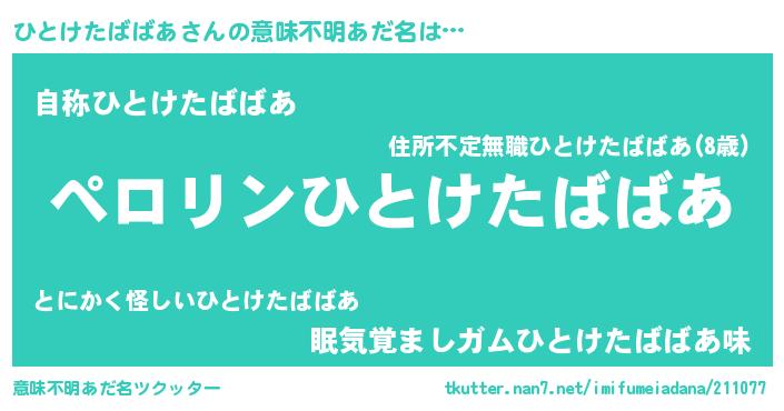 | ヒーロー風カッコイイあだ名 | 『スーパーヒトケタババア』 |