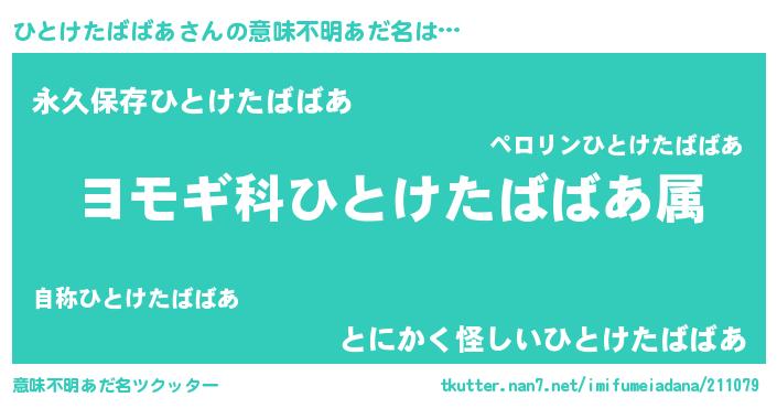| 伝説のあだ名 | 『古文書に記された吟遊詩人ひとけたばばあ』 |