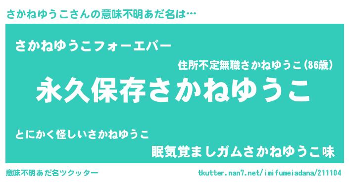 | ヒーロー風カッコイイあだ名 | 『ネオサカネユウコ』『仮面サカダー』 |