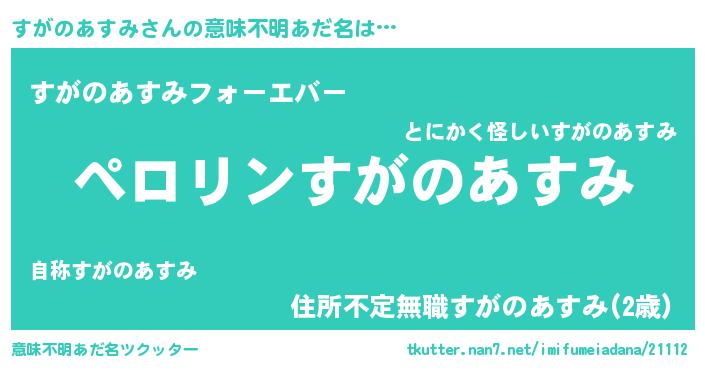 | 男性向けラノベタイトル風あだ名 | 『すがのあすみの憂鬱』 |