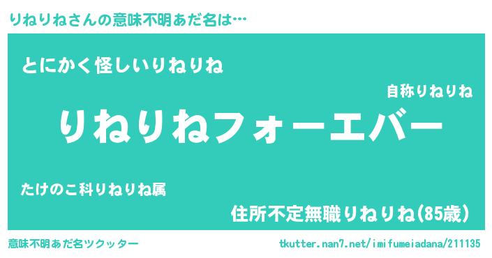 | ヒーロー風カッコイイあだ名 | 『ウルトラりねりねマン』『魔戒騎士リネ』 |