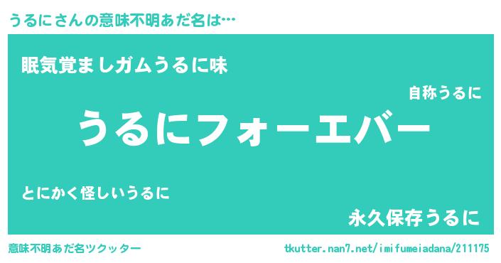 | ヒーロー風カッコイイあだ名 | 『ウルトラうるにマン』『ネオウルニ』 |