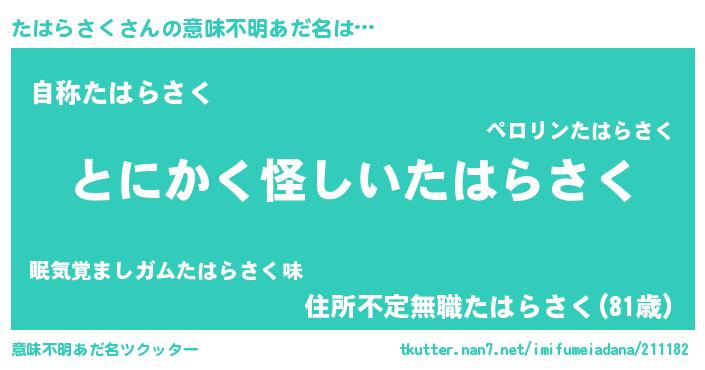 | 胡散臭い通販商品みたいなあだ名 | 『信頼と実績のネックレス…その名も「たはらさく」』 |
