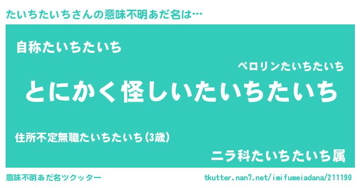 | 男性向けラノベタイトル風あだ名 | 『たいちたいちの嫁は女の子じゃないと思った?』 |