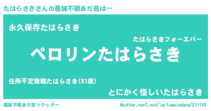 | 胡散臭い通販商品みたいなあだ名 | 『必ず成功するブレスレット…その名も「たはらさき」』 |