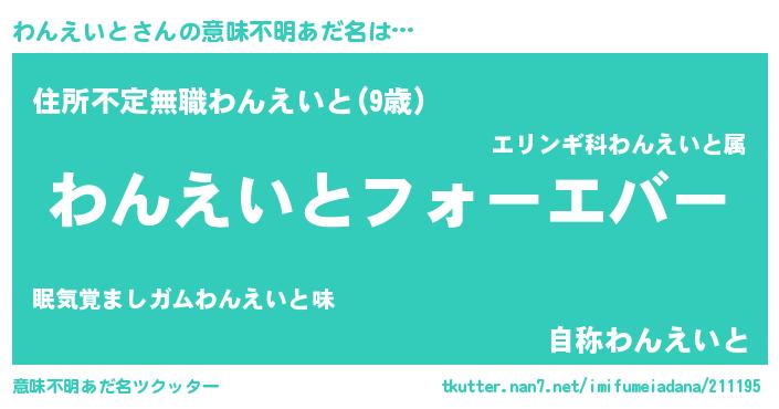 | 肩書あだ名 | 『わんえいと総理大臣』『わんえいと教官』 |