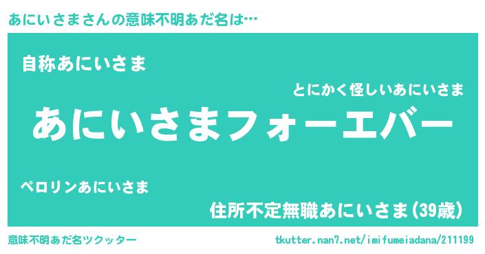 | ポケモン風あだ名 | 『アニイダネ』『アニセウス』 |