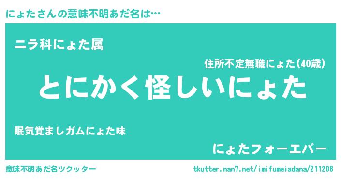 | ヒーロー風カッコイイあだ名 | 『黄金騎士ニョ』『ウルトラにょたマン』 |