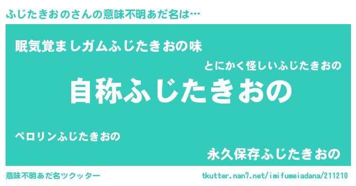 | ヘコむあだ名 | 『ふじたきおの(笑)』『ふじ太郎』 |