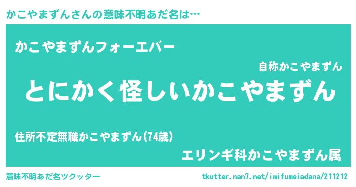 | 男性向けラノベタイトル風あだ名 | 『かこやまずんの嫁は女の子じゃないと思った?』 |