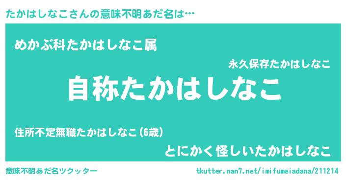 | 欧米人風あだ名 | 『ケンブリッジたかはしなこ』 |