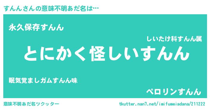 | 男性向けラノベタイトル風あだ名 | 『はたらくすんんさま!』『すんんの憂鬱』 |