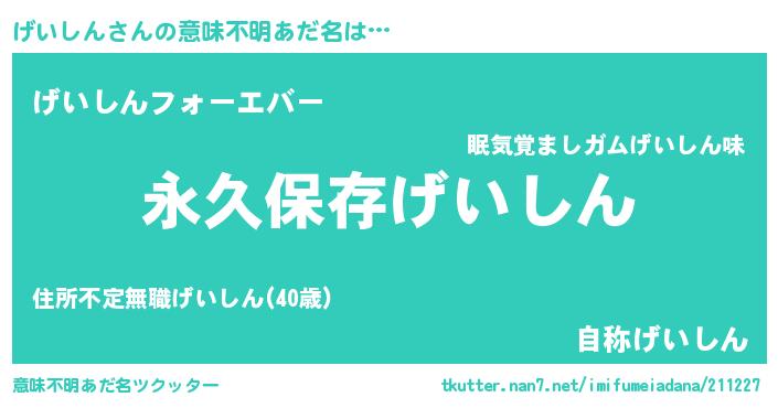 | ヒーロー風カッコイイあだ名 | 『ネオゲイシン』『ウルトラげいしんマン』 |