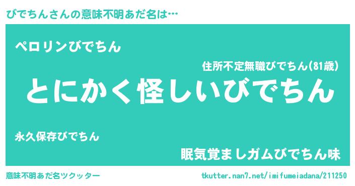 | 男性向けラノベタイトル風あだ名 | 『びでちんの嫁は女の子じゃないと思った?』 |