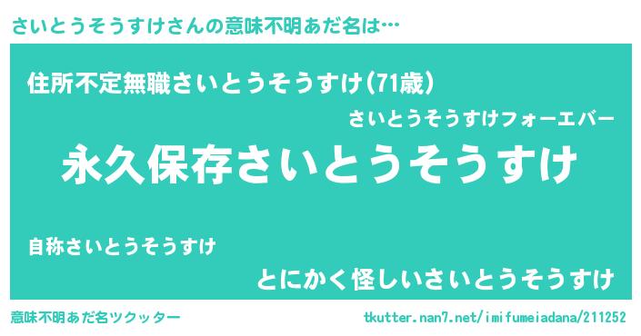 | ヘコむあだ名 | 『さいとうそうすけ(爆)』『さいぷりん』 |
