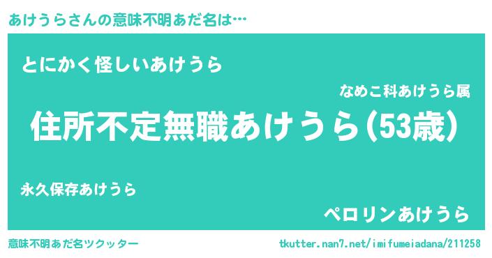 | ピコ太郎風あだ名 | 『アケ史郎』『アコ太郎』『ピコア郎』 |