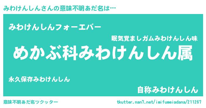 | 男性向けラノベタイトル風あだ名 | 『ミワケンシンスレイヤー』 |