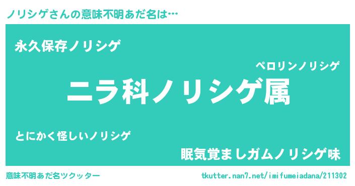 | 男性向けラノベタイトル風あだ名 | 『ノリシゲ~年齢イコール彼女いない歴の魔法使い~』 |