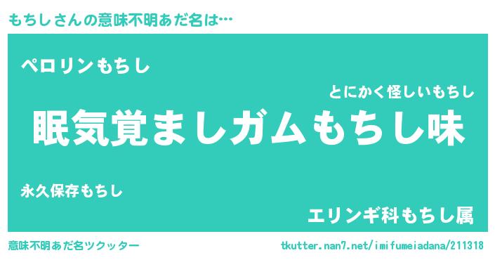 | 男性向けラノベタイトル風あだ名 | 『はたらくもちしさま!』『緋弾のモチシ』 |
