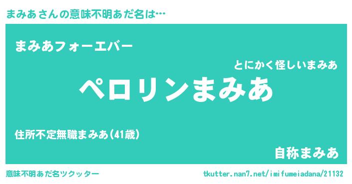 | 男性向けラノベタイトル風あだ名 | 『まみあの憂鬱』『はたらくまみあさま!』 |