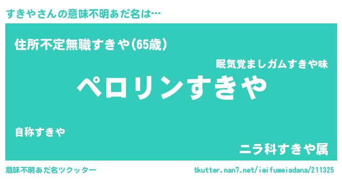 | 自動車の名前っぽいあだ名 | 『スキティマ』『スウディ』『スンR』 |