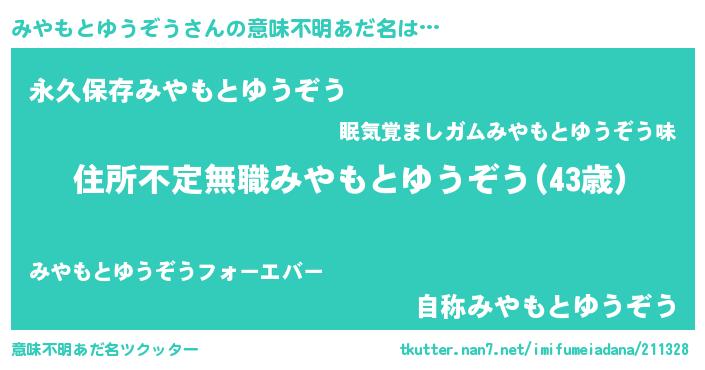 | ヘコむあだ名 | 『みやもとゆうぞう(笑)』『豆乳』 |